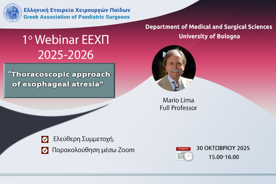 1ο Webinar ΕΕΧΠ 2025-2026, Thoracoscopic approach of esophageal atresia
